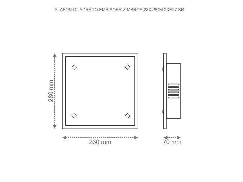 PLAFON TASCHIBRA QUADRADO EMB/SOBR ZIMBROS 28X28CM 2XE27