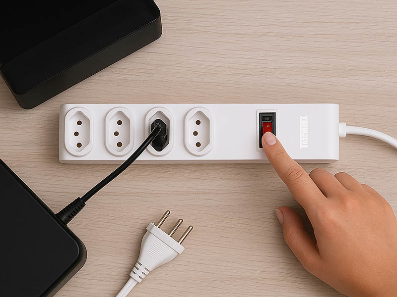 PROTETOR ELETRÔNICO TASCHIBRA 4 TOMADAS 2P+T 1m 10A